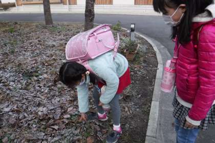 登校してきた子どもたちが,落ち葉におりた霜を,「見て,見て,きれい!」と知らせてくれました。