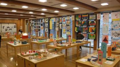 全校の子どもたちの平面と立体の作品が,ランチルームに集まりました。