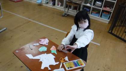 切った紙の形から想像したことを,表現しました。