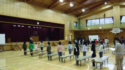 座席の間隔を空けて座り,式の流れなど教頭先生の説明を聞きました。