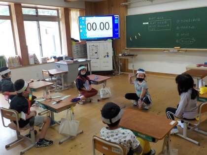 輪に飾りを付けて変身した姿を友だちと見せ合いました。それぞれに,工夫が見られて素敵な作品に仕上がっています。