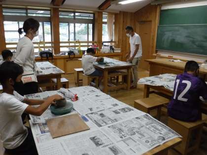 出来上がった作品は、ゲストティーチャーの先生が持ち帰って釉薬をかけて焼成してくださいます。