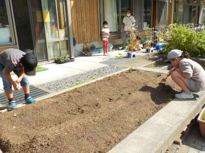 今週の初めに冬野菜の種を植えました。早々に発芽し、子どもたちは大喜びです。