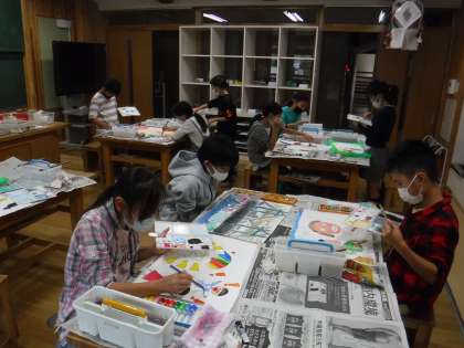 想像した場面の様子を表すために、色や形を工夫しながら、取り組むことができました。