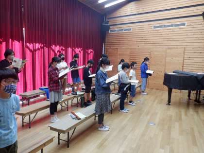 今日から学芸会で歌う曲の練習が始まっています。上パートと下パートに分かれて練習をしました。