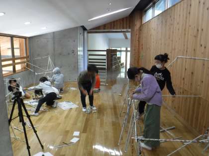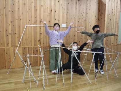 思いついたものをどんどんつくったり、できた形の中に入ってみたり、グループで協力しながら、活動を楽しみました。