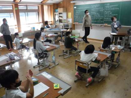 3年生は、赦免地踊りの由来や現在の様子について、熱心に集中してお話を聞くことができました。