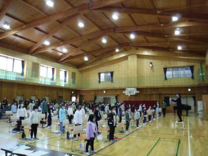校長先生のお話の後は、3年ぶりの全校合唱です。
