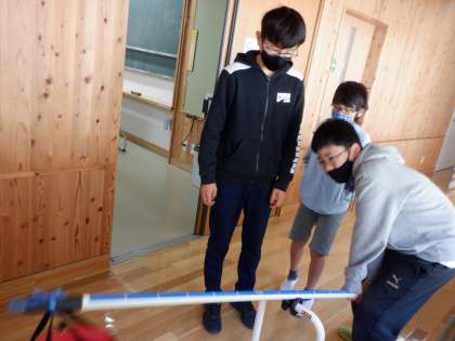 理科では「てこのはたらき」について学習をしています。てこを用いて、支店、力点、作用点の距離が変われば、てこのはたらきがどのように変わるのかを調べました。