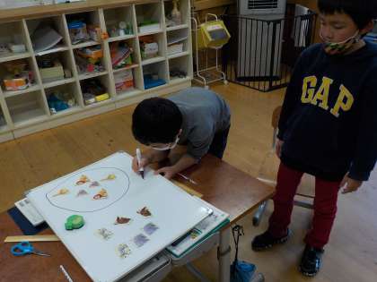 学芸会で四角形が登場するお話を演じた2年生たちは、三角形と四角形の学習をとても楽しみにしていました。今日は、形を仲間分けし、なぜその仲間に分けたのかを伝え合いました。