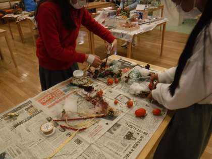 たくさんの材料を準備していただき、子どもたちはリース作りを楽しむことができました。