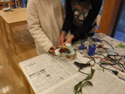 放課後まなび教室の先生方にお世話になり、クリスマスリース教室を開きました。