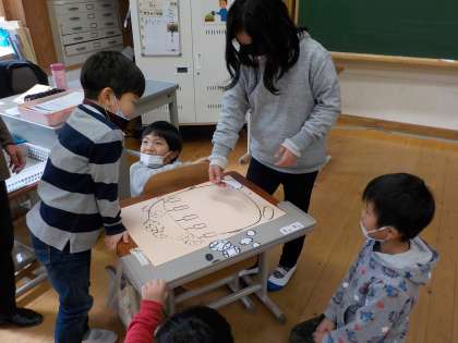今日から、3学期がスタートしました。せっかくなので、1・2年生でふくわらいとお正月クイズを楽しみました。明日からは、給食も始まり、次の学年に向けて本格的なスタートの始まりです。