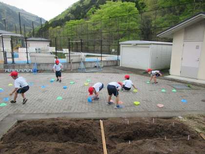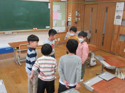 次の体育の時間は、いよいよ、2年生として1年生ににいろいろと教えてあげる「玉ねぎレンジャー☆」としての一歩をふみだします。体操服の着替え方、準備体操の仕方、整列の仕方などの基本的なことをやさしく教えてあげます。「何から教える?」「どんな風に声かけする?」と相談をしました。1・2年生が仲良くなれるような遊びも紹介することになりました。すっごくどきどきしながらもはりきっている子どもたちです。