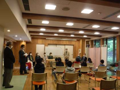 子どもたちとスタッフの皆様がランチルームに集まって、開講式を開きました。