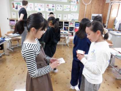 単元のまとめとして、名刺交換や自己紹介をしました。単元で学習したフレーズをうまく使って自己紹介することができていました。