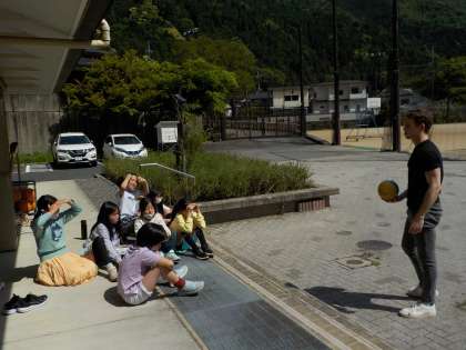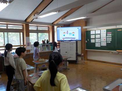 英語で、天気や遊びを言うことに慣れてきた4年生たち。今日は、ALTの先生から、アメリカの子どもたちが晴れた日によく遊ぶ遊びを少し楽しみました。これを機に、色々な国の遊びに興味をもってもらえればと思います。