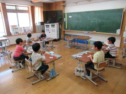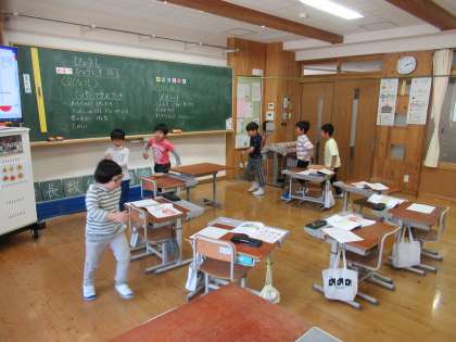 算数では、たし算のひっ算を勉強しています。「ひっ算って難しいと思っていたけどかんた〜ん!」「頭で覚えておかなくていいのでかんた〜ん!」と、ひっ算というアイテムは子どもたちの目を輝かせています。しかし、その基礎基本となるのが計算カードでの暗算です。チャレンジ計算の時間を使って、くり返しくり返し練習しています。音楽では、2拍子・3拍子の曲を聴きました。思わず体を動かす子どもたち!「2拍子は、元気よく歩く感じ!」「3拍子は、ダンスしているみたい!」と…。何度もメヌエットにのせて踊りました(笑)