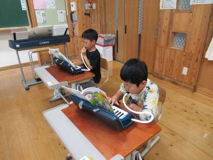 1年生のときにもがんばった鍵盤ハーモニカですが、2年生でもしっかりとタンギングや指づかいを覚えていた子どもたちでした。かっこうやかえるのがっしょうをすらすらと吹く子どもたちでした。ぷっかりくじらという曲を教えると、「うわぁ!くじらぐもなつかしい。」とうれしそうでした。音楽っていいですね!