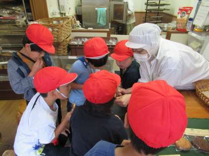 玉ねぎレンジャー☆として気合いを入れて『まちたんけん!!』に行きました。「猫猫寺さん!」では、楽しみしていた猫のご住職さんと会うことができました。猫に関わるものでいっぱいのお部屋の中を、目を真ん丸にしながら探検しました。みんなでかわいく「ポーズだにゃ〜ん!」次に、「メリーフィーズさん!」では、もう鼻をくんくんさせながらあま〜いにおいにめろめろの子どもたちでした。「また、買いにきます!」と名残惜しそうに「さようなら。」を言っていました。