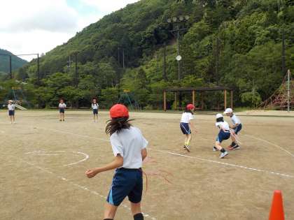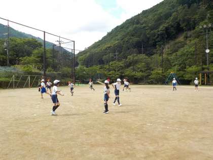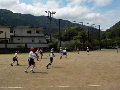 今週末の運動会に向けて、高学年でしっぽとりの練習を行いました。今日の試合結果は引分け!!
