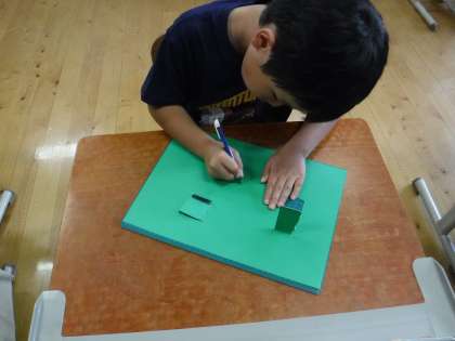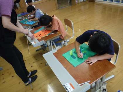 子どもたちは、安全に気を付けて、ていねいに工作紙を切ることができました。