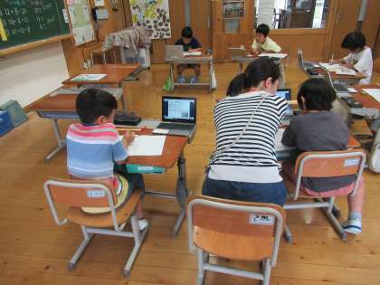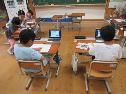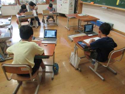算数の文章問題を考えるツールとして「図」をつかっています。初めは、図の便利さに気が付かなかった子ども達も、図が式を導くのに有効であることがわかってきました。「もっと問題を解きたい!」「もう一問出して!」と、ノリノリです。GIGA端末を見ながら、ノートに図を書き考えていく子ども達の顔は、それはそれは真剣そのものです。かっこいい〜!!