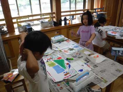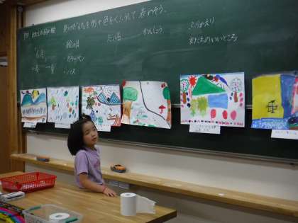 花や鳥、山などの自然を描いた人や、雨などのお天気の様子を描いた人、明るい色を使った人など、それぞれが感じた「6月」を絵に表現することができました。
