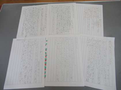 見つけたものの特徴をメモして、そのメモをもとに文章を書きました。どんな順に書くと伝わりやすいか、一番伝えたかったことは何か、まとめには何を書くといいのか…。「はじめ」「中」「終わり」のまとまりを考えながら書きまとめることができました。