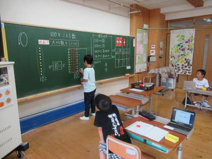 昨年の今頃…10までの数を勉強していた子ども達でしたが、2年生になり、100をこえる数を勉強していきます。今日は、「100ってどんな数?」と、問いかけ、黒板に100の星をつくりました。「10のかたまりが10で、100かぁ。」「大きな数やねぇ。」「1000までいくの?」と興味津々な子ども達でした。がんばっていこう!!