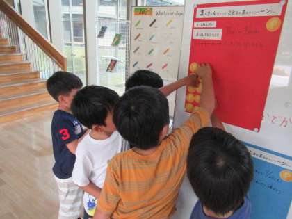 低学年は「音楽がなったら教室に戻り授業の準備をする!」を、『まねキャン☆』の目標にしています。2年生は、さらに1年生に「戻るよ〜。」「帰ろうね。」と声かけをすることもがんばろうとしています。このキャンペーンをきっかけにして、憧れ・憧れられる関係になるといいと思います。