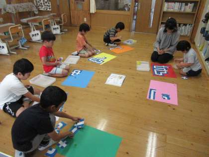算数では、プログラミング思考を働かせて、16個のパーツを使って一周回れる道路を組み合わせながらつくっていきました。意外と難しくって大変でしたが、できた時には「やったぁ!」と思わず声が出ていました。