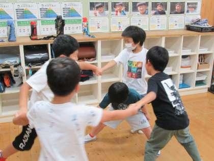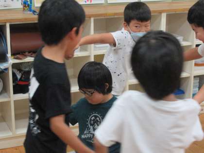 少し早いサプライズお誕生日会で、「おめでとう!」と言われた玉ねぎレンジャー☆レッド。レッドが教室のドアを開けた瞬間、「お・め・で・と・う!」とお祝いの言葉が飛び交い、輪の中に入れてあげてHappyBirthdayの歌をうたいました。「ありがとう!」と照れながらお返事していました。