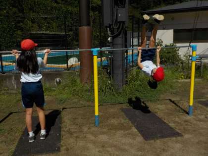 今日は、久しぶりに鉄棒をしました。3年生の時にできなかった技に挑戦したり、技をつなげたり、それぞれに頑張って取り組んでいました。