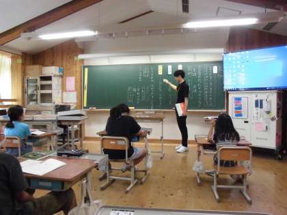 教育実習生の先生に教わりながら,体育や国語の学習をしています。