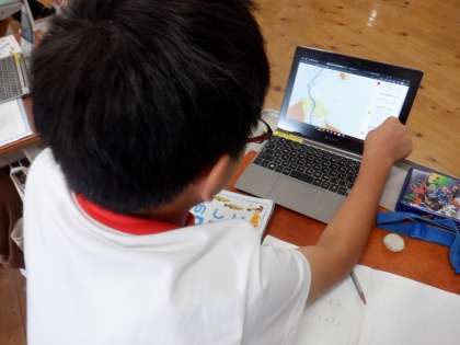 洪水が起こった時にどうすればよいか、自分たちの住んでいる地域のハザードマップを見ながら考えました。いざというときに自分の身を守れるように、日頃から備えておきましょう。
