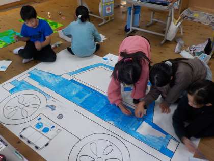 道具関係も仕上がりが近付いてきました。今回のお話には重要な、空色タクシーの仕上がりも順調です。
