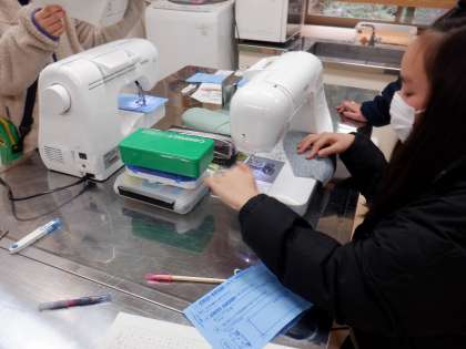 ミシンの使い方もだいぶうまくなってきました。スピードを調整しながら真っ直ぐ縫うことができています。
