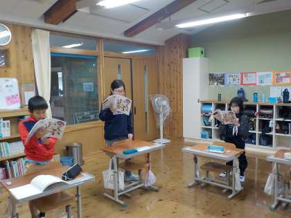 音楽の学習では、小さな世界を2つに分かれて歌いました。最後に演奏を聴くと、とてもきれいに2つの旋律が聴こえていました。
