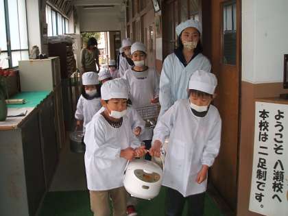 そして,給食当番もみんなで協力して頑張っています。