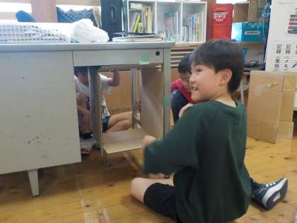 教室の中に、子どもたちのアイデアがいっぱいつまった居心地のいい場所ができました。休み時間には、他の学年の人たちにも見てもらい、楽しみながら活動をすることができました。