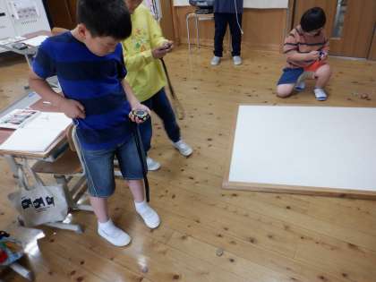 今日は、「秒」の単位について学習をしました。心の中で10秒数えてストップウォッチを止める「10秒チャレンジ」をしたり、こまが回る時間をストップウォッチで計ったりと、楽しみながら「秒」の単位に親しんでいました。