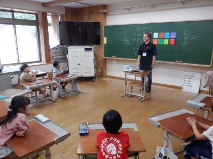 2学期になり、新しいALTのケン先生にお会いしました。生まれ育った場所は自然いっぱいのアメリカというお話をお聞きして、子どもたちは「いいな〜」「行ってみたいな〜」と目をまんまるにしていました。これからの授業もとても楽しみですね。