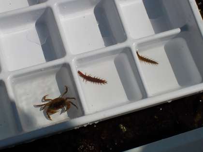 京都府環境管理課水質係の方に協力をしていただきながら、高野川の水質調査を行いました。『きれいな川』にしか住まないヘビトンボやサワガニ、ナガラトビケラなどを見つけることができました。これから、この美しい高野川を守っていくために自分たちにできることを考えていきます。