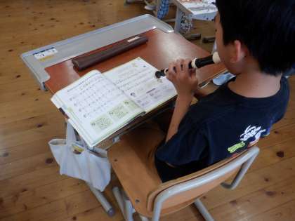 リコーダーで「あの雲のように」「アチャパチャノチャ」を演奏しました。「音をしっかり伸ばすことを意識して吹こう」「一音一音タンギングを意識して吹こう」と、それぞれの曲の感じが分かるように、演奏の仕方を工夫していました。