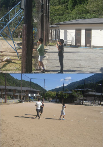 調べていると、かげふみ遊びが始まりました。かげを追いかけて遊びました。