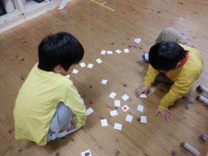 外国語では、いろいろな「形」の言い方を学習しています。今日は神経衰弱をして、楽しみながら形の言い方を覚えました。