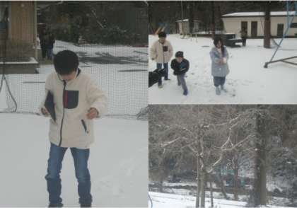 3学期が始まりました。4年生の最初の授業で雪が積もりました。「0度より低い温度」を学習した後、雪の中で温度を測りました。「零下」や「マイナス」の温度を学習しました。その日の朝はマイナス3度を国道では示していました。