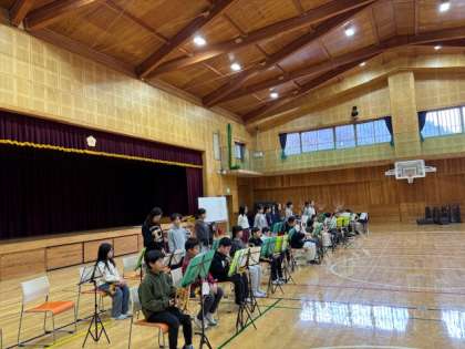 今日は、今学期2回目の全校でのMUKUMUKUタイムでした。3〜6年生の金管演奏に、1,2年生のポンポンや打楽器も加わり、ぐっと華やかになっています。