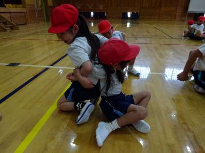 体育館で、いろいろな体ほぐしの運動遊びを楽しみました。